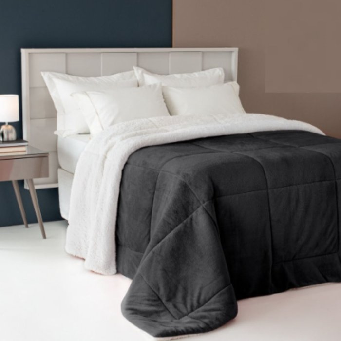 Edredom Sherpa Tipo Lã de Carneiro Casal Queen Preto Casa Dona