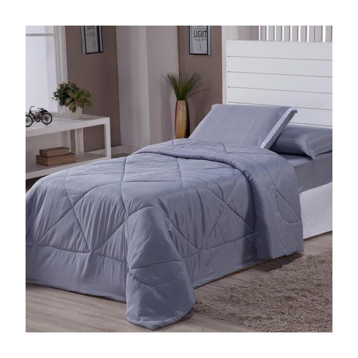 Edredom Solteiro Aconchego 04 Peças 150 Fios Cinza
