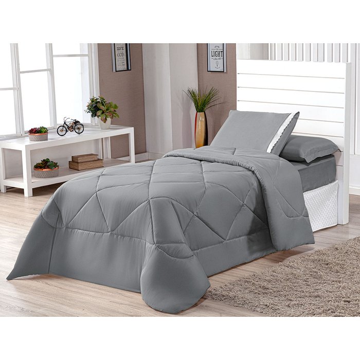 Edredom Solteiro Cinza Dupla Face Avulso 2,40mx 1,60m
