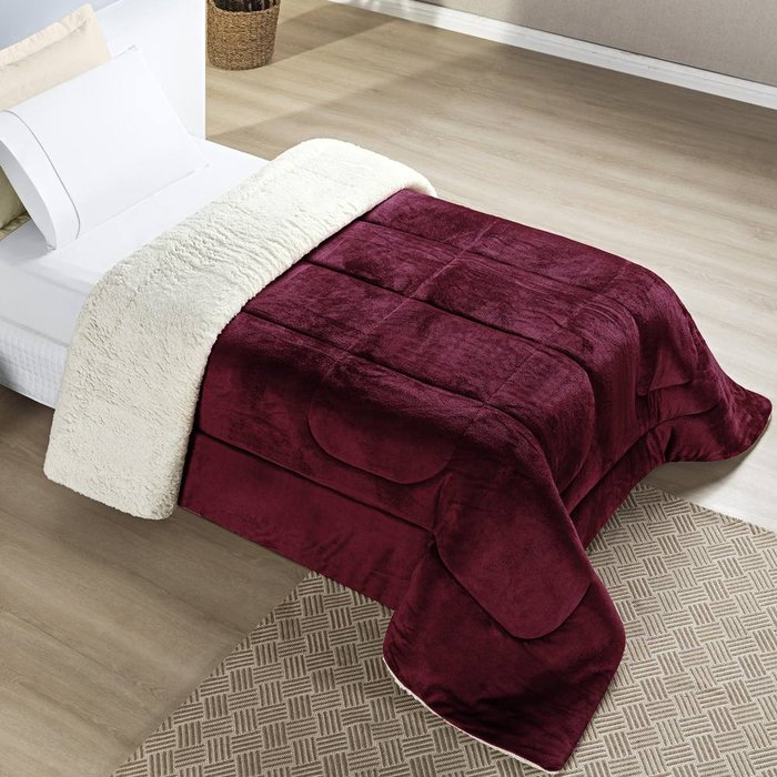 Edredom Solteiro Coberdrom Sherpa/mantinha Everest 1 Peça - Vinho Bia Enxovais Coberdrom Everest