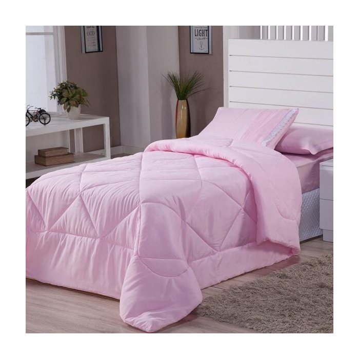Edredom Solteiro Dupla Face Aconchego 4 Peças 150 Fios Lilás