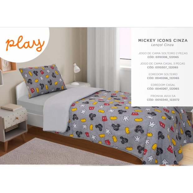Edredom Solteiro + Jogo de Lençol malha Mickey