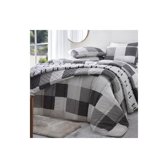 Edredom Sultan Casal Dupla Face Realce Quadriculado 2,45M X 2,25M - Branco/Preto