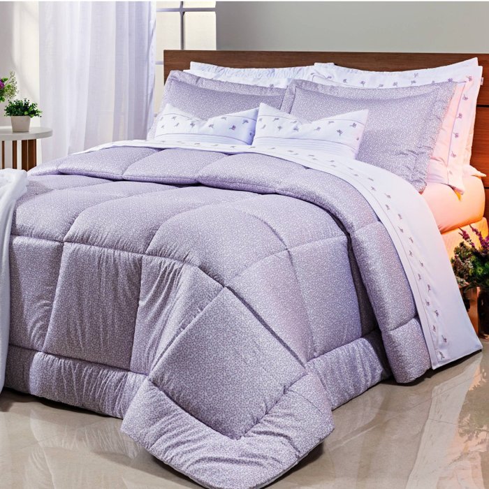 Após um dia exaustivo, nada melhor que deitar em uma cama confortável, por isso, apresentamos o edredom da coleção Lavendel, medindo 3,15m comp. x 2.70m larg., confeccionado em tecido 100% Algodão - Percal 200 Fios. Coleção: Lavendel