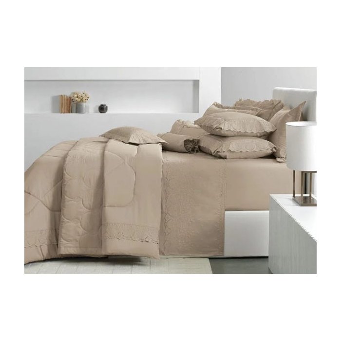 Edredom Trussardi 300 Fios Algodão Egípcio Giovanna Nocciola