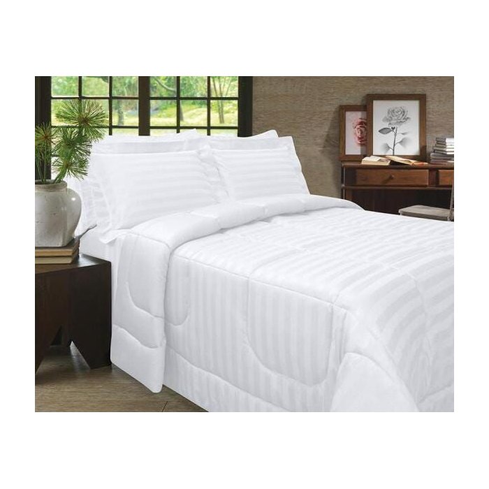 Edredom Zelo Select Maquinetado Solteiro - Percal 400 Fios - Toque Acetinado Branco
