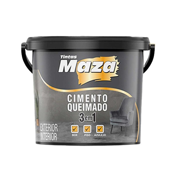 Maza Revestimento Cimento Queimado 3 em 1 Traz um efeito manchado e rústico aos ambientes. Pode ser utilizado em superfícies de reboco, fibrocimento, concreto, massa corrida, massa acrílica e outros.