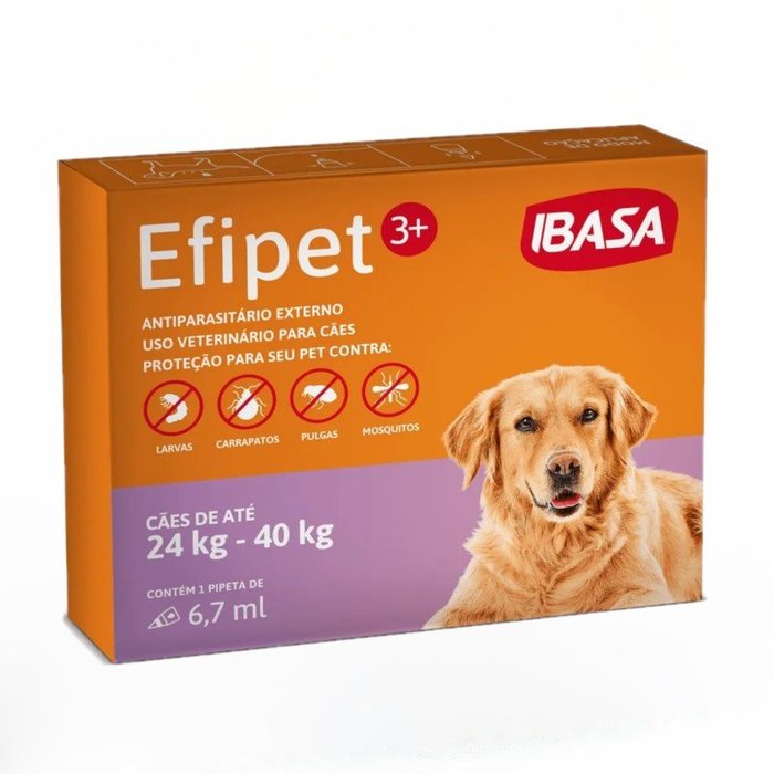 Efipet 3+ Antiparasitário Para Cães 24kg-40kg 6,7ml - Ibasa Anti-pulga