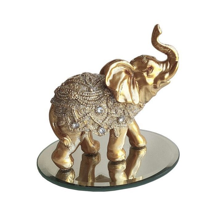Elefante Decorativo Resina C/ Base De Espelho Indiano Sorte