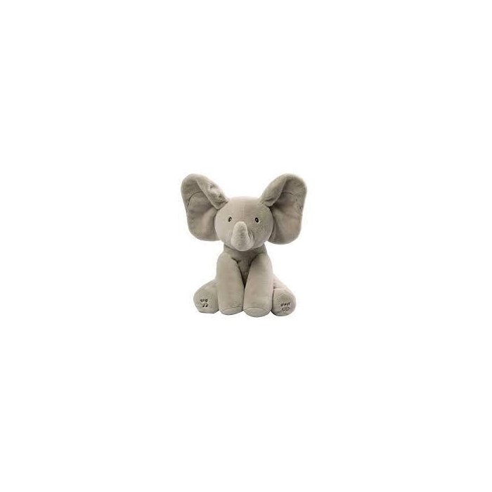 Flappy the Elephant fofinho do GUND tem movimento do corpo e é preenchido com animação. Flappy vai jogar um jogo interativo de peek-a-boo ou cantar "Do Your Ears Hang Low" com o premir de um botão. E as orelhas de Flappy batem durante o jogo para o deleite do seu bebê.