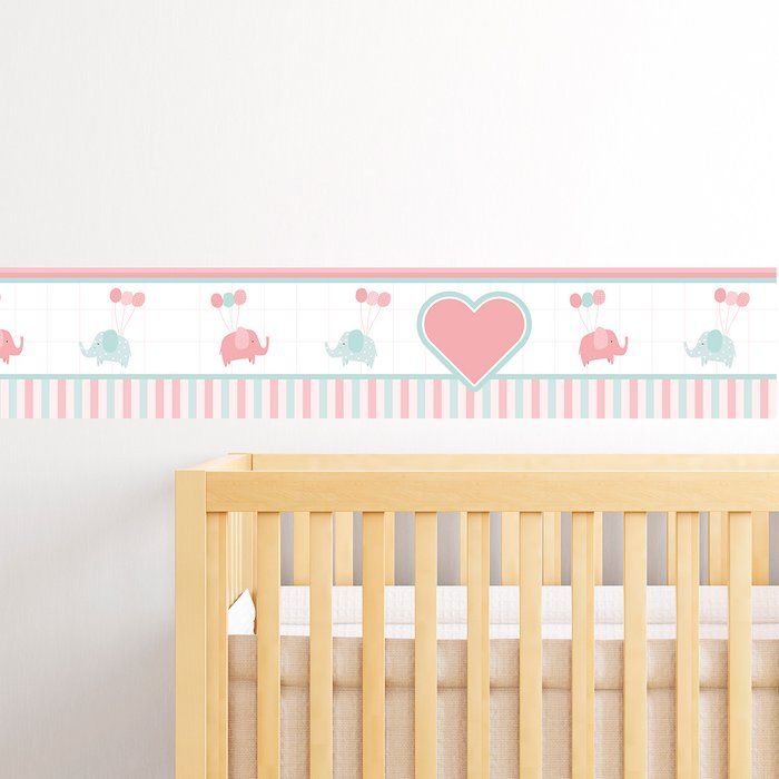 Elefantes e Coração Adesivo de Parede Infantil Faixa Border