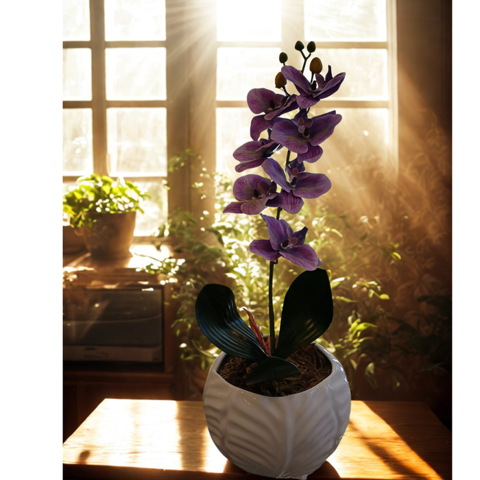 Elegante Vaso de Cerâmica com Arranjo de Orquídea Artificial - 55cm - Decoração Sofisticada