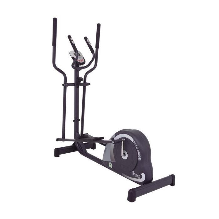 Eliptico com sistema magnético de esforço. Barras articuladas para desenvolvimento de membros superiores. Regulagem de esforço. capacidade para 120kgs. Chassis em tubos de aço e carenagens de ABS. Painel eletronico com 6 funções: Velocidade, Tempo, Distância, Calorias, Batimentos Cardíacos e RPM. Regulagem de altura em 3 níveis. Hand Grip para medição de batimentos cardíacos.