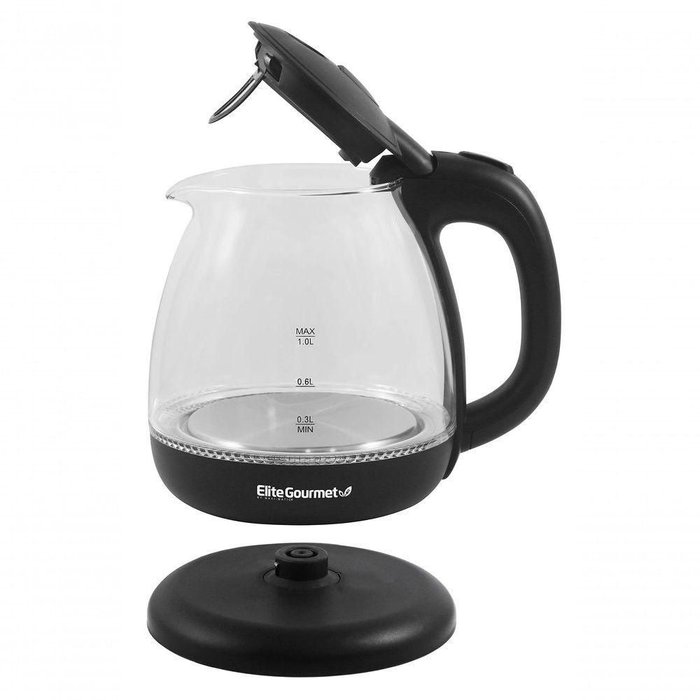 Elite Gourmet Chaleira Elétrica 1l De Vidro Com Base Sem Fio E Led Azul (preto)