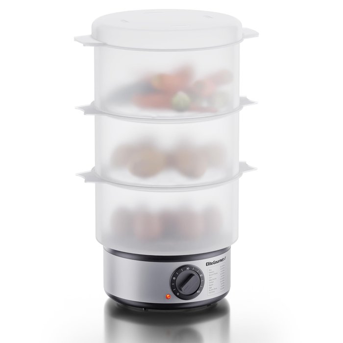 Elite Gourmet Vaporizador de Alimentos com 3 Níveis, Capacidade de 7,5 Litros, Timer com Desligamento Automático, Livre de BPA, Cor Inox