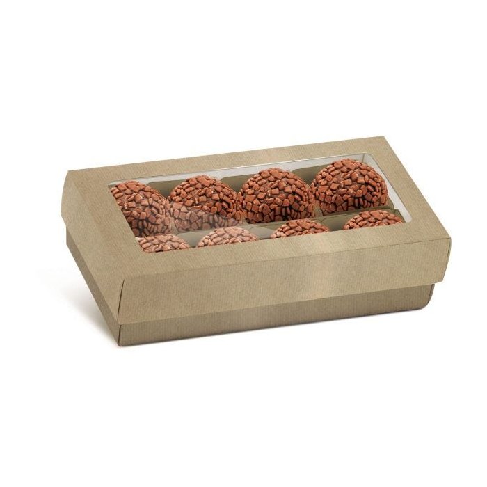 Caixa para 8 doces Kraft, ideal para brigadeiros e bombons.