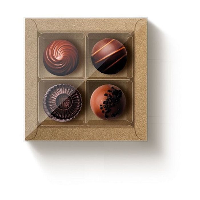 Caixa para 4 doces Kraft com tampa de acetato. Ideal para doces, brigadeiros e bombons.