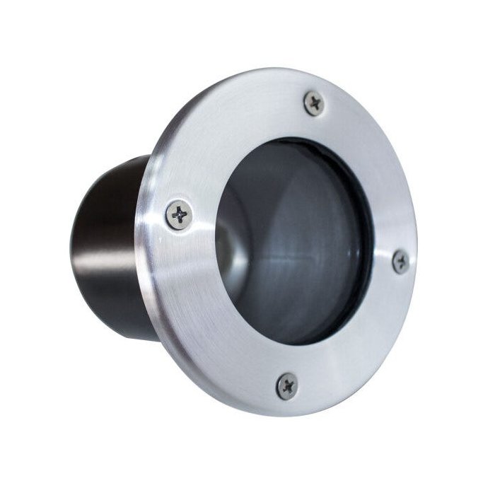 Projetor embutido pequeno para solo, utiliza uma lâmpada GU10. Ideal para ser usado em jardins e pisos externos ou internos. Extremamente resistente a sol, chuva e maresia, fácil instalação. Sua pintura eletrostática confere extrema proteção e durabilidade.