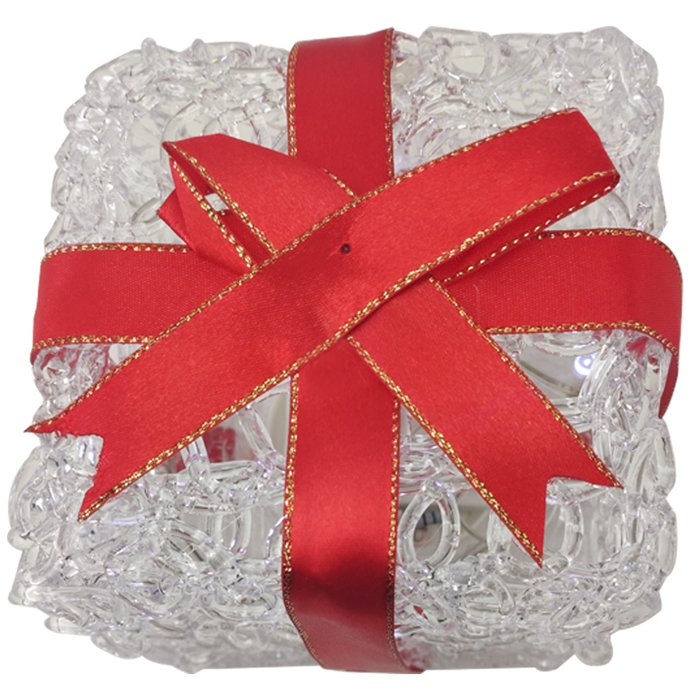Enfeite Caixa de Presente Iluminado Acrilico 5 Leds Mesa Casa Escritório
