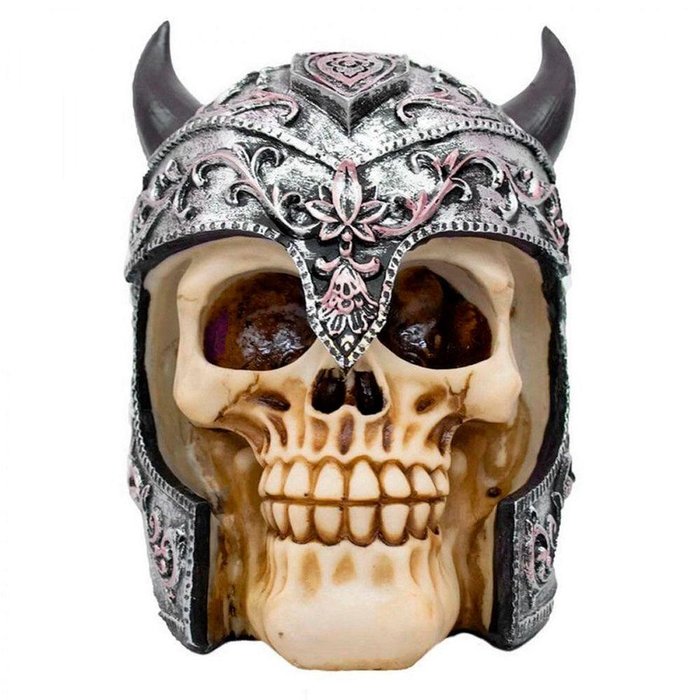 Enfeite Caveira Capacete Chifres Viking Crânio Resina