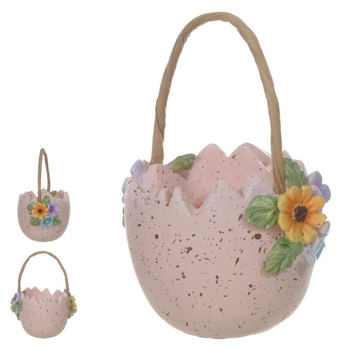 Enfeite Cestina Ovo Rosa com Flor Rosa