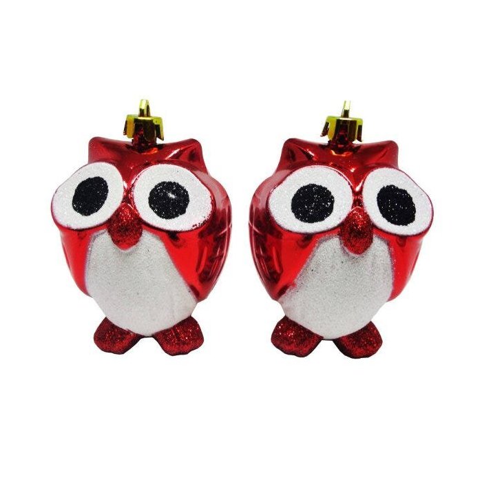Enfeite Coruja de Natal 10cm 2 Peças Niazitex Vermelho