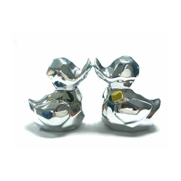 Enfeite de Cerâmica Pato Geométrico com 2 Pçs Prata