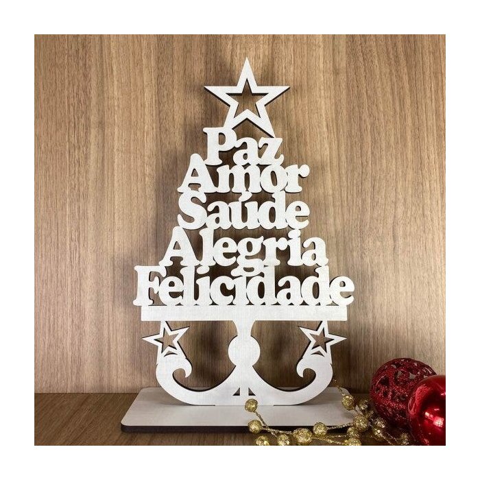 Enfeite de Mesa de Natal Vazado em MDF Pinheiro Palavras