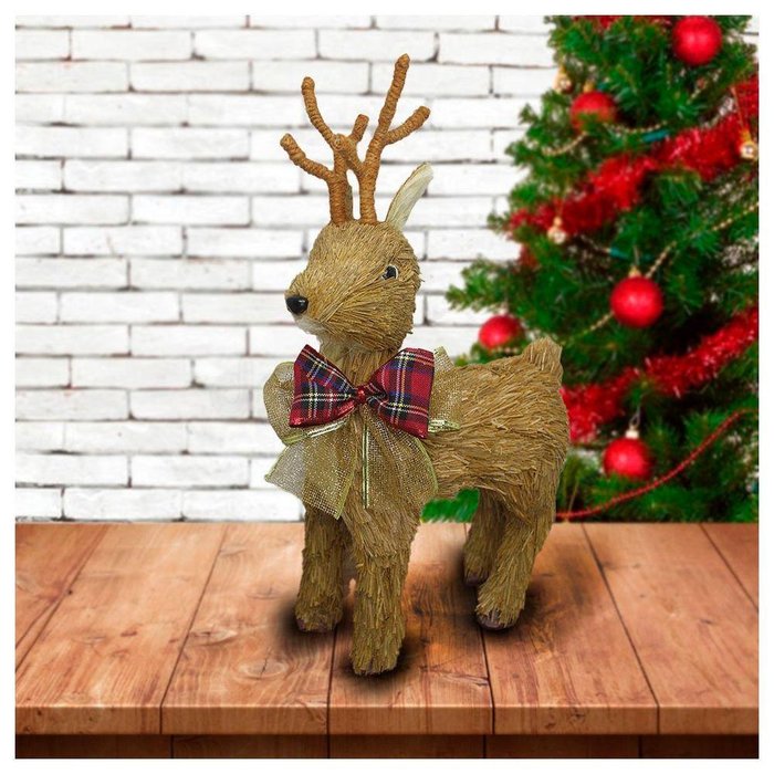 Enfeite de Natal Rena de Palha Natalina 46cm