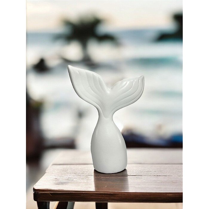 Enfeite Decorativo Cauda Baleia Média Branca em Cerâmica Decoração Náutica Praia