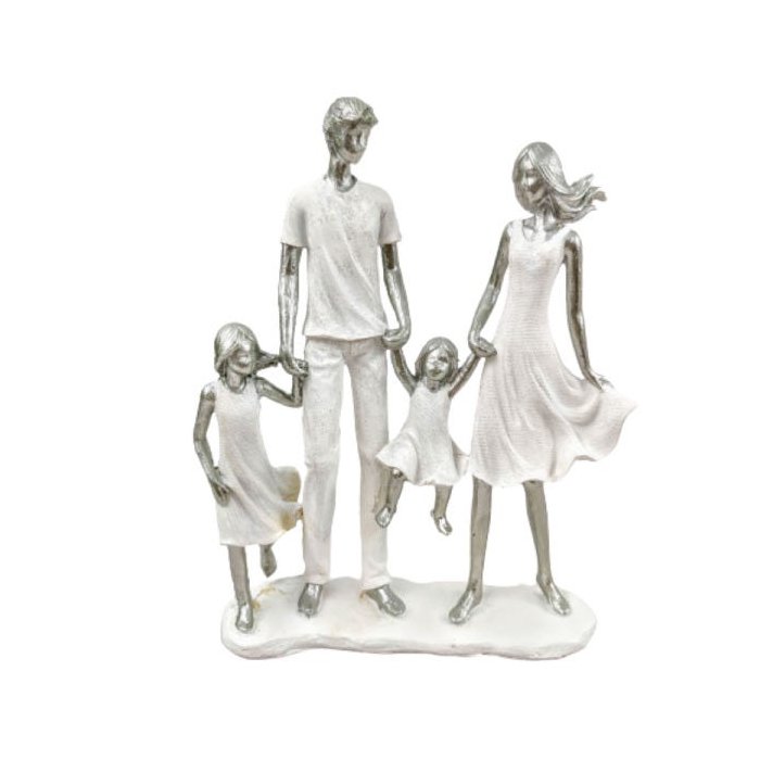 Enfeite Estatua Familia Casal 2 Filhas 24x21x6cm Branco