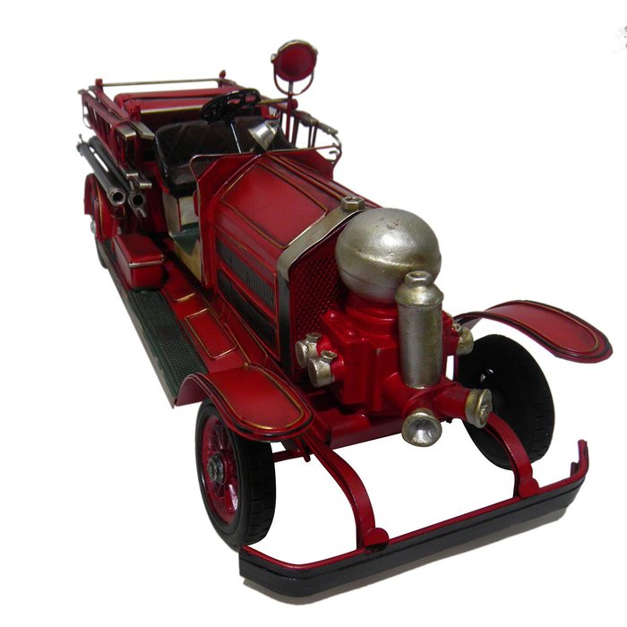 Caminhão de bombeiro feito a mão, modelo antigo e vintage, com detalhes impressionantes do interior do veículo, detalhes das mangueiras e escadas, ótima peça para decoração para quem curte e coleciona peças vintage!Características do Produto: