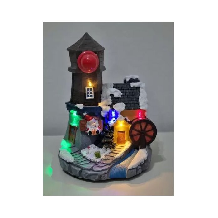 Enfeite Natalino Lamparina Musical Com Luz Moinho
