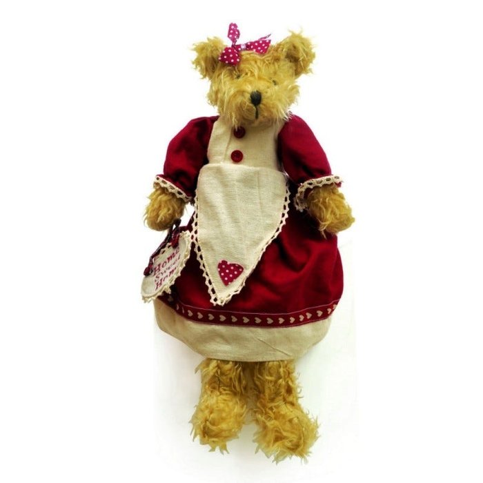 Enfeite Patchwork Vermelho Ursa Vestido - 36 X 12 Cm