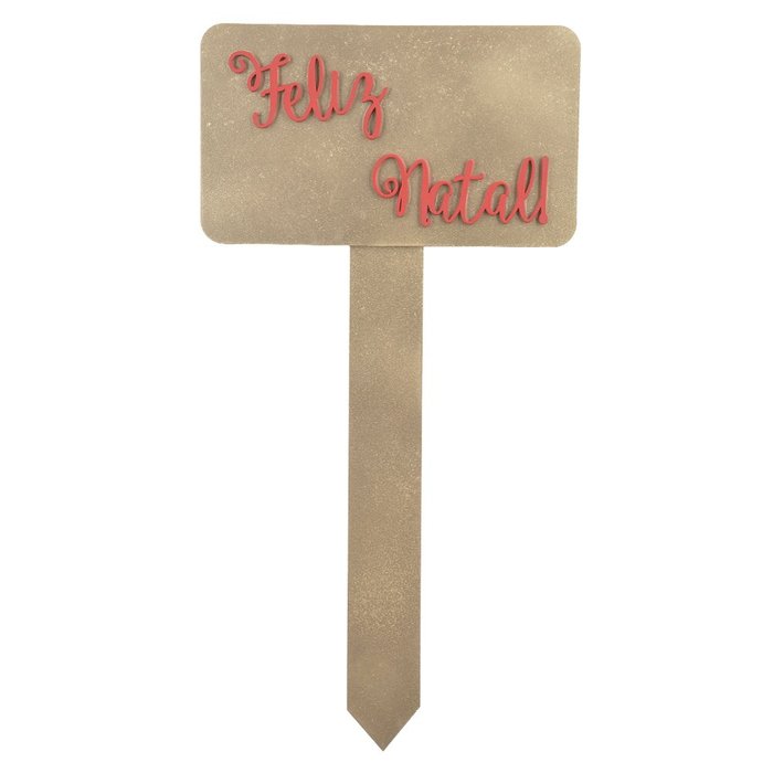 Enfeite Placa Natal Dourado 28x15cm -