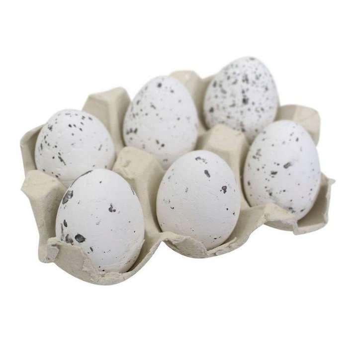 Ovinhos brancos com manchas escuras. ; Material: isopor Medidas dos ovos