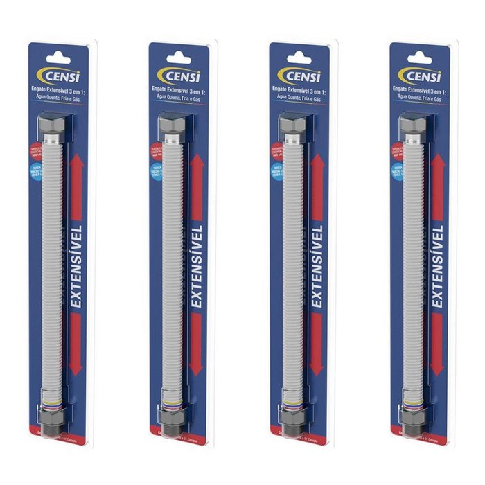 kit c/4 Engates Extensíveis 3 em 1 para Água Quente, Fria e Gás - Rosca Macho 1/2 x Fêmea 1/2 - Compr. 30 cmMarca: Censi