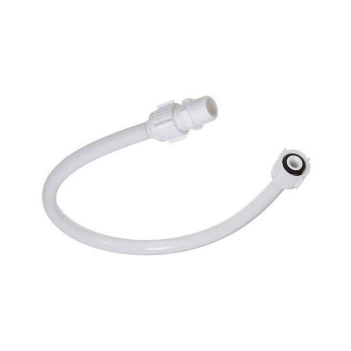 Ligação para água quente ou fria com vazão plena em plástico branco, para instalação em bacia sanitária.