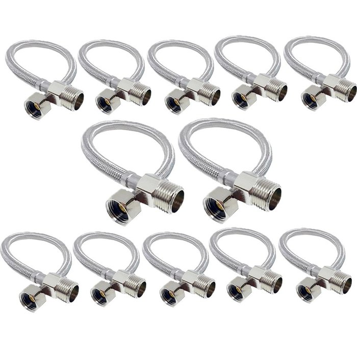 Engate Rabicho Mangueira Flexivel 60cm 1/2 Polegadas Ajustavel Kit 12 Uni Aço Inox trançado Pia Torn