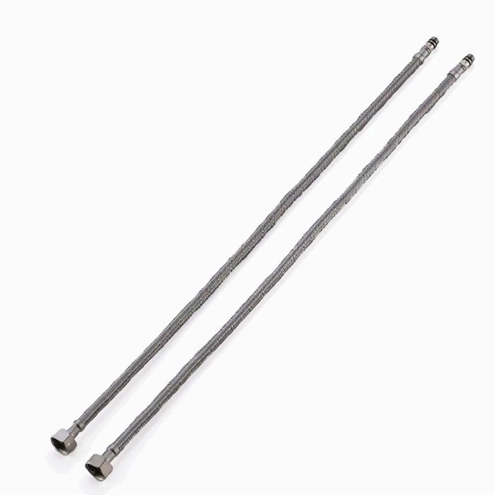 Par de Rabicho Monocomando Flexível (50 cm) de malha de aço inoxidável.
