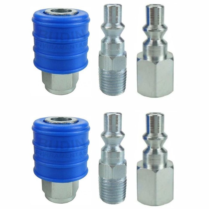 Engate Rápido Pneumático + Pino Engate Rápido Compressor Pistola de Pintura Utilizado nas mais variadas operações de transferência de ar, gases ou líquidos. São utilizados em sistemas de ar-comprimido, equipamentos de pintura e lubrificação, bicos para encher pneus, pulverizadores, rodo calibradores, ferramentas pneumáticas, linhas de ar-comprimido, etc - Engate Rápido 1/4" com Rosca Fêmea 1/4" Especificações Técnicas: Diâmetro interno: 1/4" Rosca: 1/4" BSP Vedação: Borracha Nitrílica Molas: aço DIN 17223/64C Pressão máx. trabalho: 250 lbs/ pol²/ 16bar Componentes: aço Vazão: 0,96 Nm³/min. (6 kgf/cm² press.) Temp. trabalho: - 20/ + 100° Conteúdo Embalagem: 2 unidade Pino Engate Rápido Rosca Fêmea Encaixe de 1/4" Rosca Fêmea 1/4" Fabricado em Aço Conteúdo Embalagem: 2 unidade Pino Engate Rápido Rosca Macho Encaixe de 1/4" Rosca Macho1/4" Fabricado em Aço Conteúdo Embalagem: 2 unidade * Produto com Nota Fiscal e Garantia *