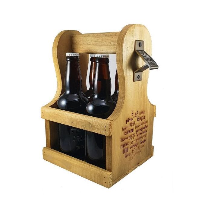 *ENGRADADO EM MADEIRA PARA 4 CERVEJAS 500 ML OU 600 ML E ABRIDOR DE GARRAFAS COM ÍMÃ*