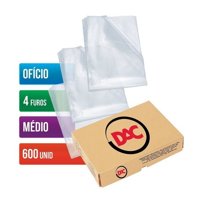Envelope Plastico Oficio 4 Furos Medio com 600 Dac