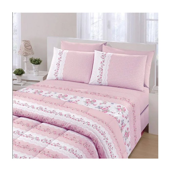 Enxovais Cama Adulto Casal Queen Lençol Duplo Santista -Royal Plus Maite 1 Rosa