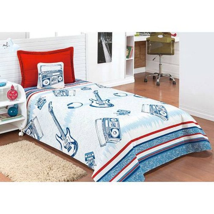 Esse lindo kit todo moderno, com desenhos e estamparia jovem, perfeito para quem gosta de ousar e se divertir até na hora de dormir. Além de lhe deixar confortável em sua cama, ainda vai deixá-la bem arrumada e irada para todos os momentos.