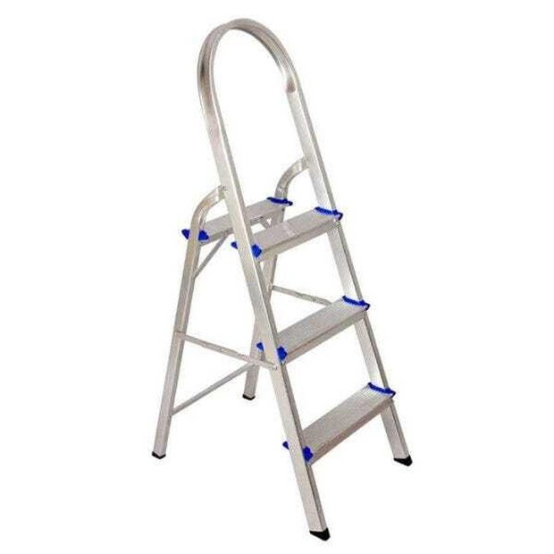 Escada Alumínio Forte Doméstica Com 3 Degraus Até 120Kg Real