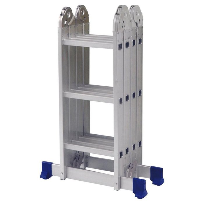 A Escada de Alumínio Multifuncional 4x3 com Plataforma vai te impressionar! São 8 formas de utilização em um só produto. Seu grande diferencial são suas chapas de aço que se encaixam servindo como plataforma, possibilitando utilizar a escada como andaime. Super resistente, suporta até 150 Kg. Possui catracas com excelente qualidade, travamento automático na extensão e ponteiras emborrachadas abauladas para melhor aderência no piso, garantindo segurança total durante seu uso. Estável e versátil, a Escada Multifuncional ainda é fácil de utilizar, em menos de um minuto você pode trocar a posição alcançando superfícies mais altas e lugares de difícil acesso com agilidade. Possui 4 partes de 3 degraus com ranhuras antiderrapantes (12 degraus), alcançando a altura de 3,37m quando totalmente estendida. Sua estrutura é de alumínio, compacta e leve para manuseio, com dobradiças em aço. Por ser totalmente dobrável, ao fechá-la seu volume diminui ocupando pouquíssimo espaço. É a ferramenta que você precisava para as tarefas do dia a dia e para uso profissional!
