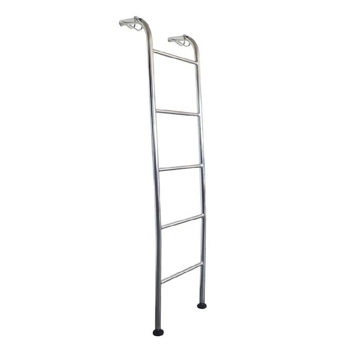 Escada Curva Para Beliche Este produto é confeccionado em aço carbono e tem seu acabamento cromado.
