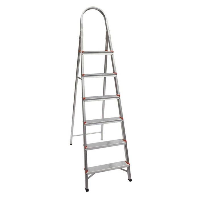 Quando for abrir a escada para utilizar tenha certeza que ela esta travada antes de subir, nunca exceda o limite de peso que ela suporta