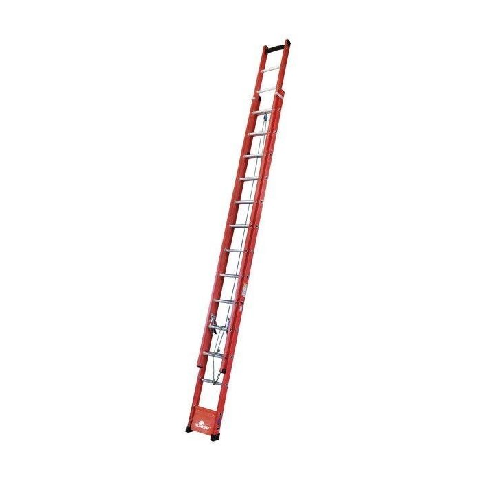 Escada de fibra, modelo extensiva, marca worker, não consultora de eletricidade, maior durabilidade, maior leveza, sapatas antiderrapantes, capacidade máxima de 110 kg, uso pratico, material resistente.